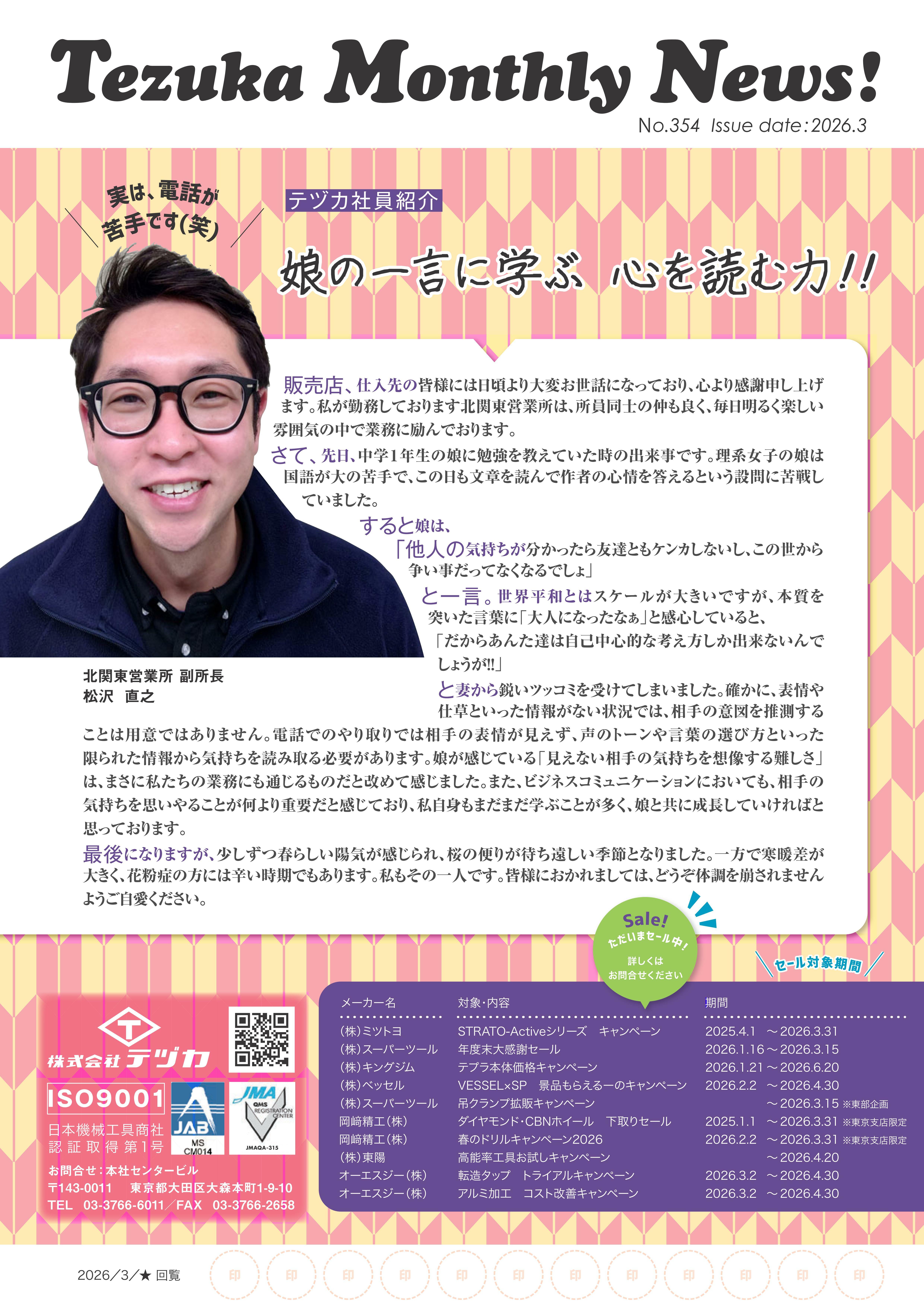 TEZUKA NEWS No.354(3月号)をアップ致しました!